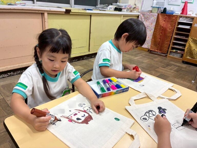 好きな絵を描いたり色塗りをしたりして、かばん作りを楽しんでいました。