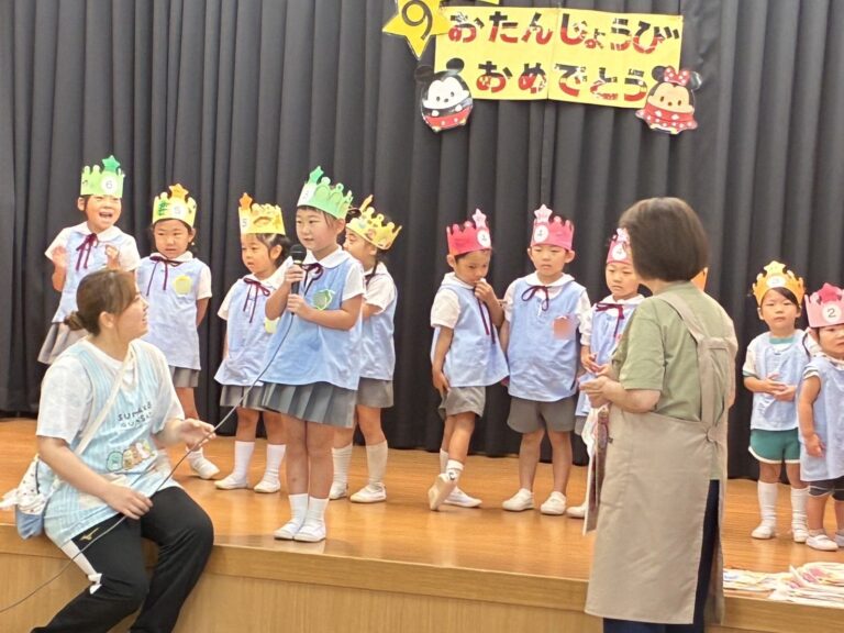 お誕生日児の子どものなかには、少し緊張している様子の子もいましたが、大きな声で名前や将来の夢を言っていました♪
