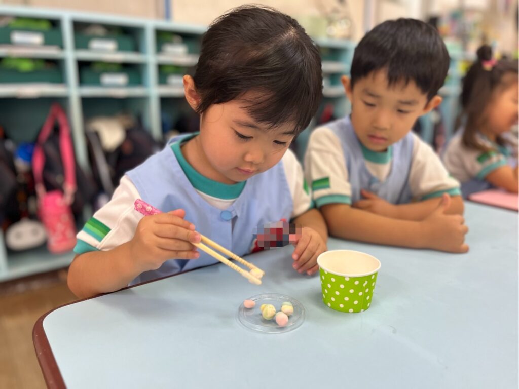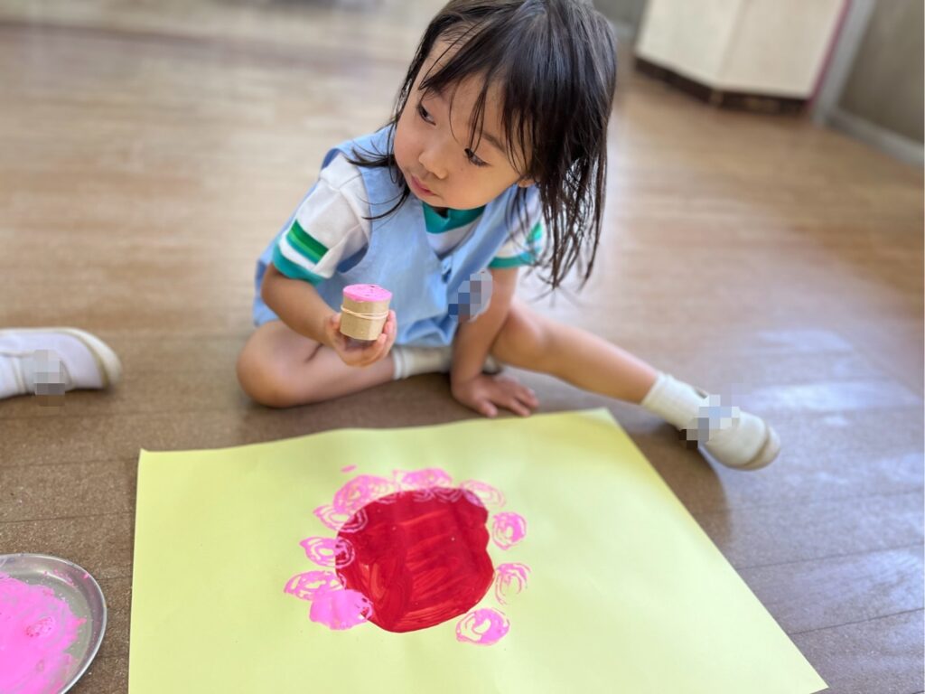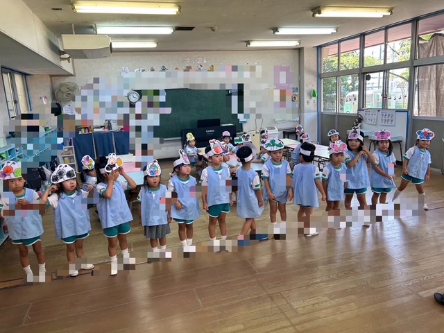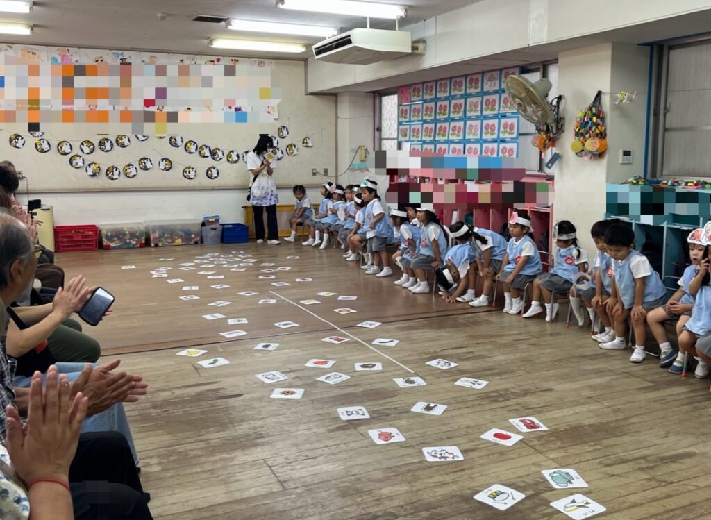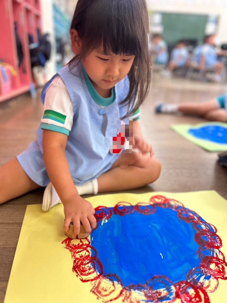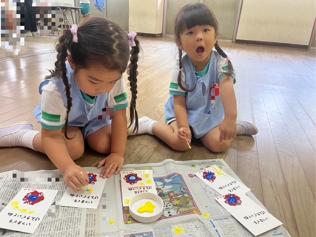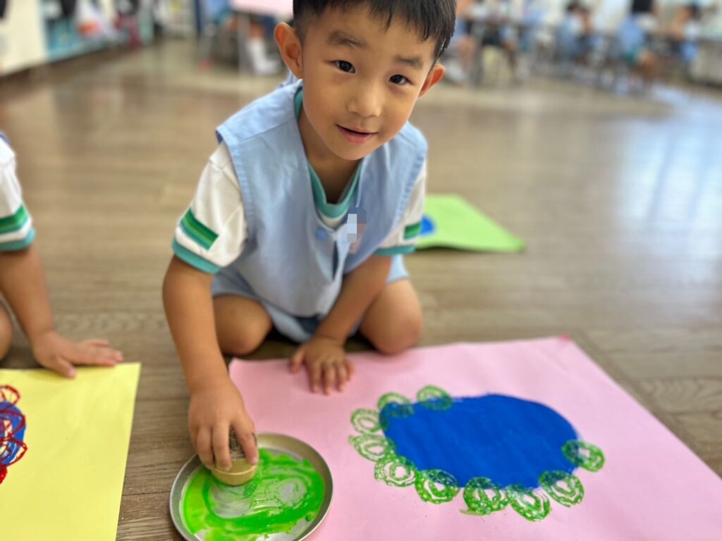9月 カンナ組(平野愛和第三学園) 2025年10月14日 ⭐︎ハガキ作り⭐︎ 祖父母に感謝の気持ちを込めてハガキを作りました!みんなが大好きなミャクミャクを指スタンプで描きました⭐︎ ⭐︎祖父母参観⭐︎ たくさんのおじいちゃん、おばあちゃんの前ではずかしがったり緊張する姿も見られましたが、手遊びの発表・絵カード(仲間集め)・むしむしフェスティバル(踊り)もみんなで頑張りました! ⭐︎作品づくり⭐︎ 絵の具や技法を使いながら楽しく描いてくれています!完成が楽しみです⭐︎ ⭐︎お誕生会(クラス発表)⭐︎ 9月はクラス発表があり、みんなの前で踊りを披露しました🎵『む〜しむ〜しフェスティバ〜ル』と唄いながら元気よく踊ってくれました⭐︎ ⭐︎おはしの練習⭐︎ 紙粘土を丸めた物をつかんでカップに入れています。遊びの中でおはしの正しい持ち方を教えていき、少しずつ上手になってきました!
