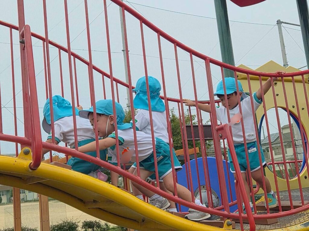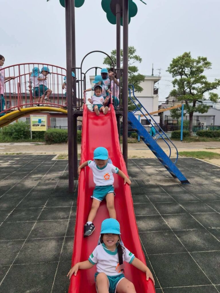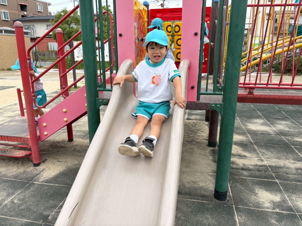 遊具があいて、遊び始めるといつもと違う滑り台や遊具に大興奮のポピーさん!