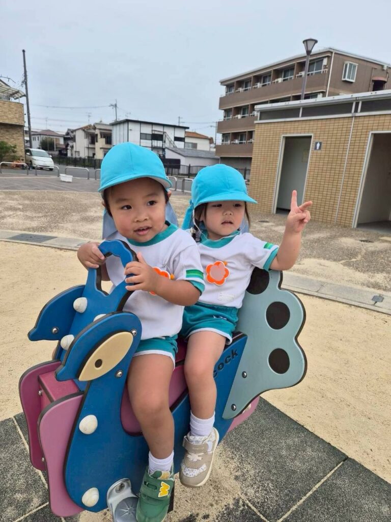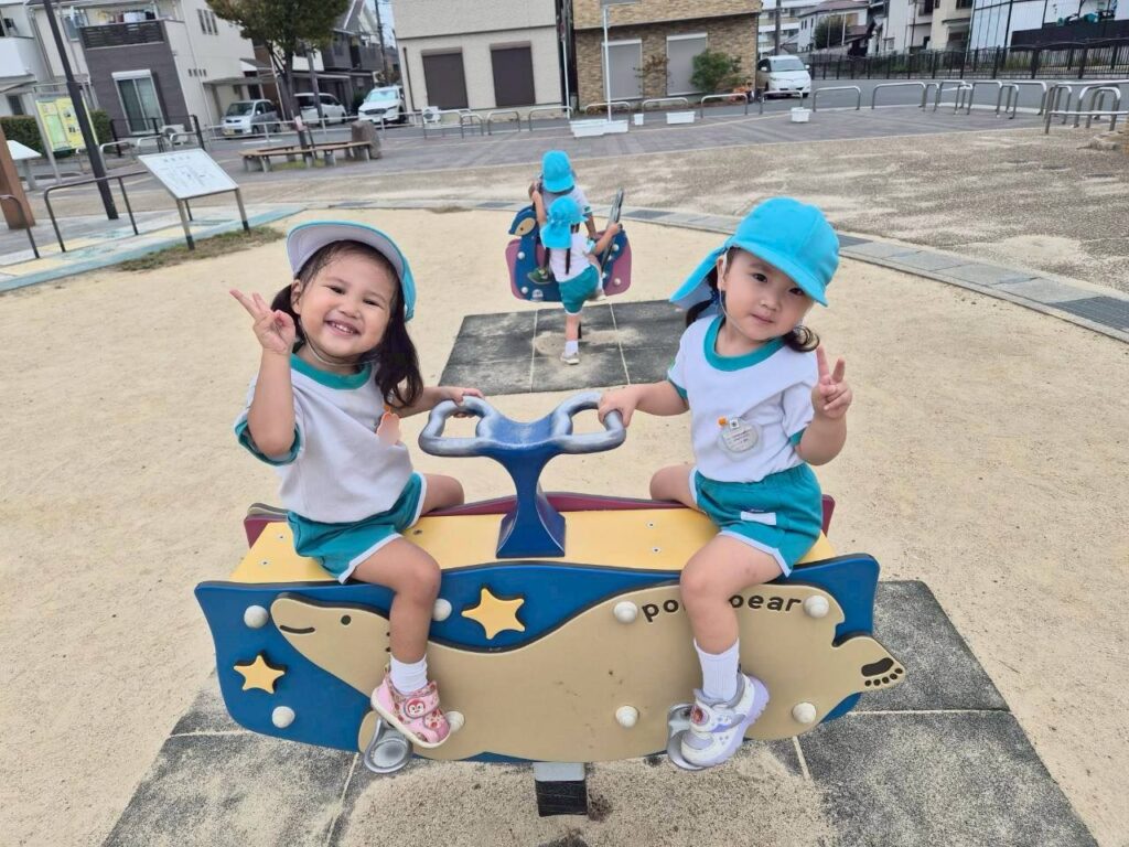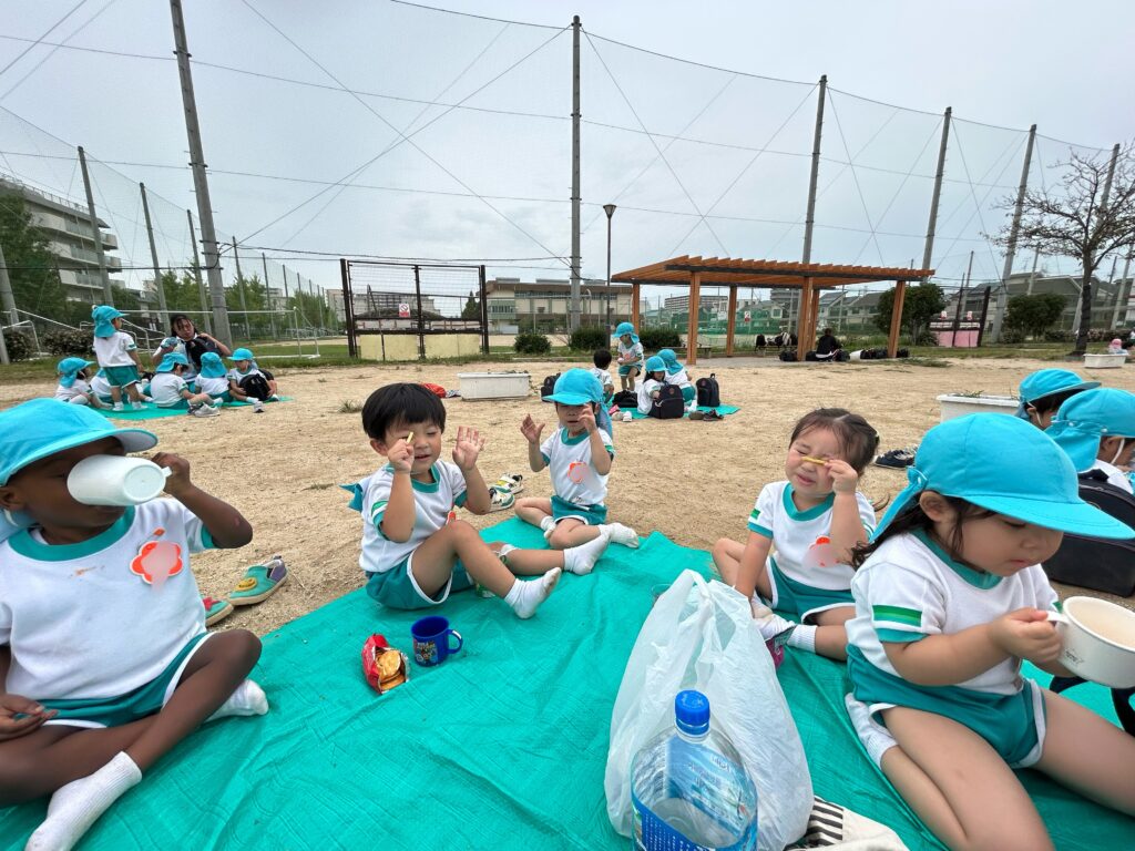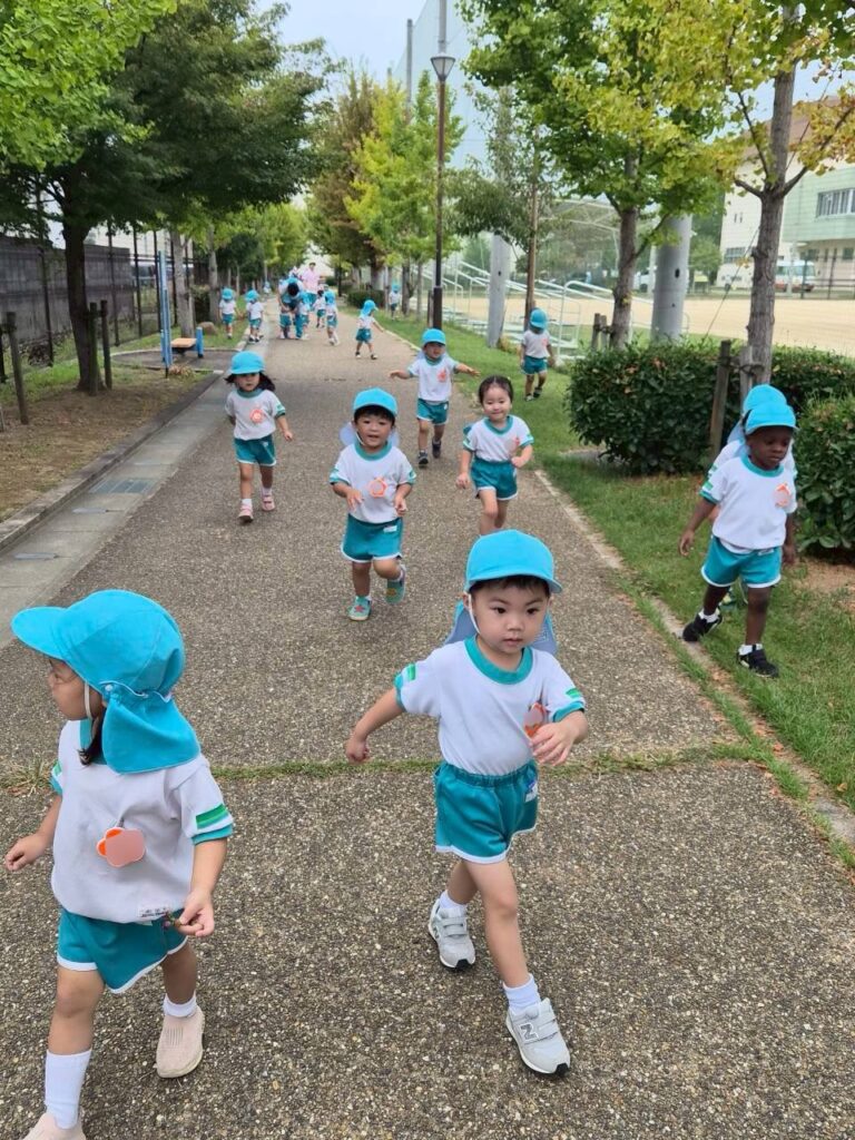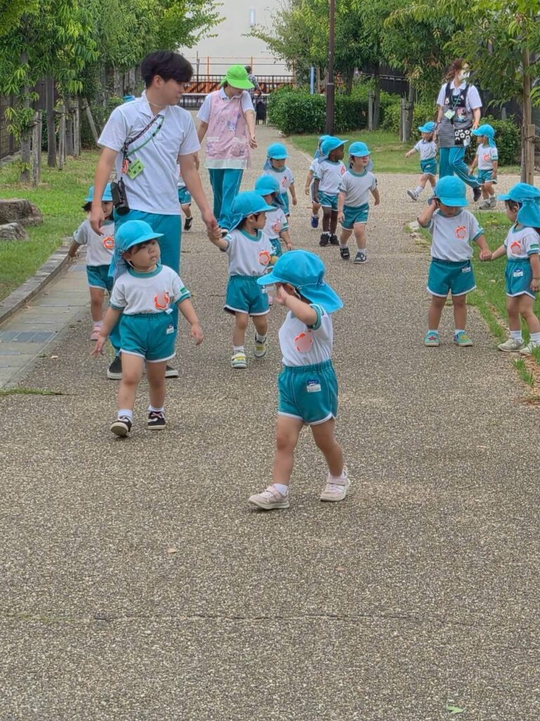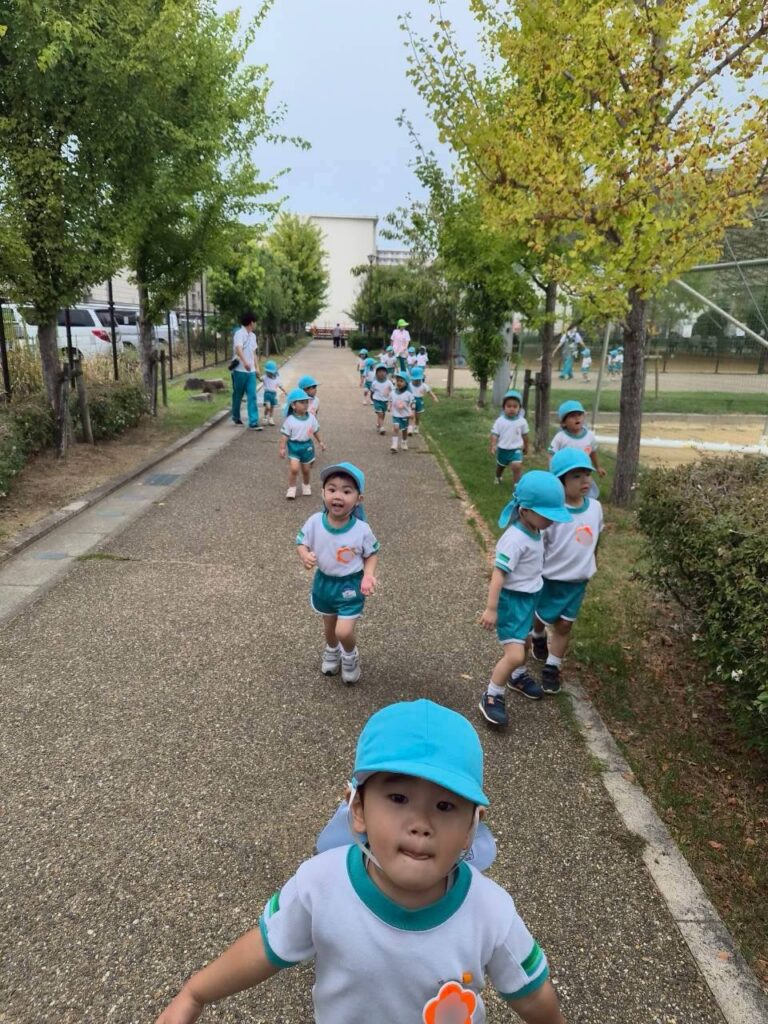 公園に到着すると他の保育園のお友達が遊んでいたので、グラウンドの周りを散歩しました⭐︎