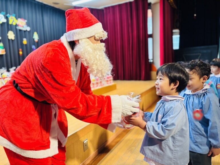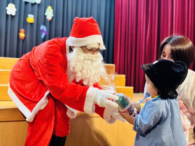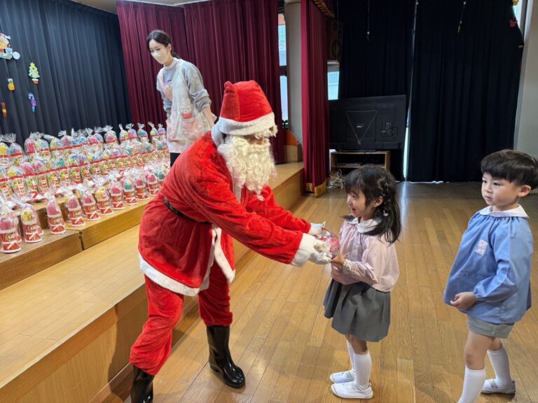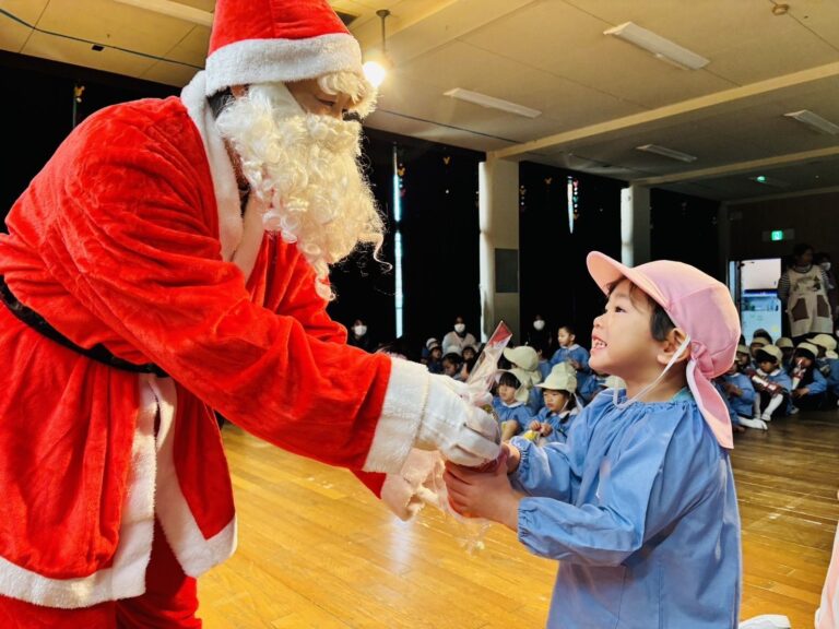 サンタさんからプレゼントを手渡しでもらい、恥ずかしそうにしながらも「ありがとう」と感謝の言葉を伝えていました♪