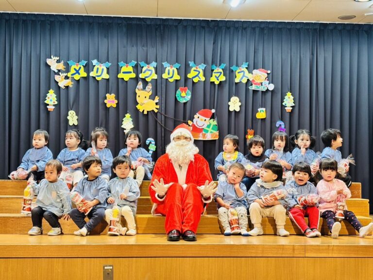 クリスマスの歌をうたっていると、サンタさんが登場し「サンタさんだ!」と嬉しそうな子ども達でした☆