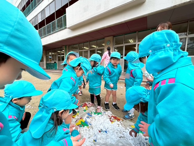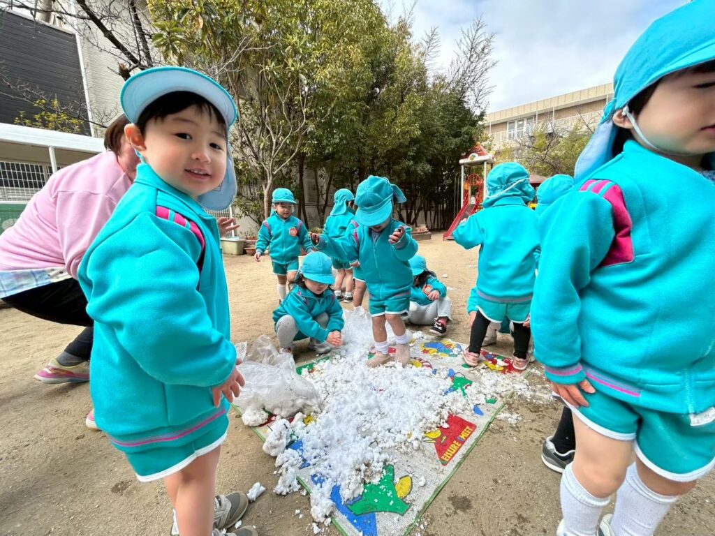 ポピー2歳児(平野愛和第三学園) 2026年3月30日 鬼は外〜! 真っ白の雪に触って雪遊びもしました!冷たくて気持ちよかったよ! お並びも上手になりました! みんなで美味しい給食とおやつの時間!お箸の練習も頑張っています♪スヤスヤお昼寝Z z z 椅子取りゲーム座れなくて悔し泣きする子どもたちもいましたが、やる気満々に張り切っていました! ポピーぐみさんもあと少しです!みんな元気で笑顔いっぱい楽しい毎日でした!