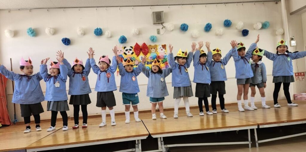 11月生まれのお誕生会がありました! お誕生児さんは、元気いっぱい自分の名前や将来の夢、出し物の踊りを発表しました! 司会の年長さん、頑張って盛り上げてくれました。 出し物はれんげ組でお面を付けて、「つのつのつーの」を発 …