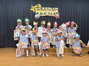 9月のお誕生会を行いました。お誕生日児の子どものなかには、少 ...